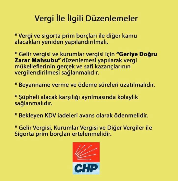 Gelir vergisi. Kurumlar vergisi ve diğer Vergilerin ile sigorta prim borçları ertelenmelidir.”dedi.