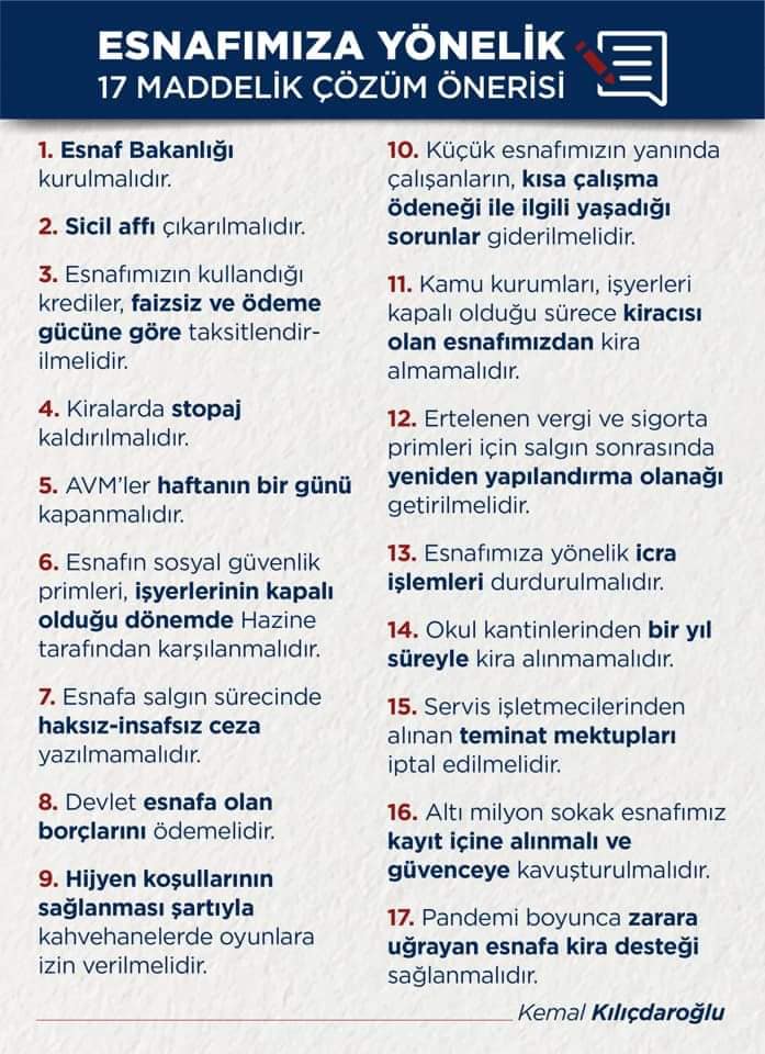 Yaşanan Ekonomi krizden en çok etkilenen esnafı sorunlarını dinlemek için kollarını çemleyen Nizip İlçe Başkanı Haluk Kahraman ve yönetimi esnafı sorunlarını dinledi. Hem de genel merkezin esnafı sorunlarını çözüm için yapılan broşürü dağıttı, Haluk Kahraman “Bugün yönetim kurulu üyelerimizle esnaf ziyaretlerimizi yaparak sorunlarını dinledik Esnaflarımız ekonomik kriz sebebiyle büyük bir çaresizlik içerisinde olduklarını söylediler. Bizde kendilerine CHP olarak esnaf çiftçi işçilerimizle ilgili broşürlerimizi ve maske dağıtımında bulunduk. Her zaman yanlarında olduğumuzu söyleyerek CHP iktidarında sorunlarını çözeceğimizi söyledik. “dedi.