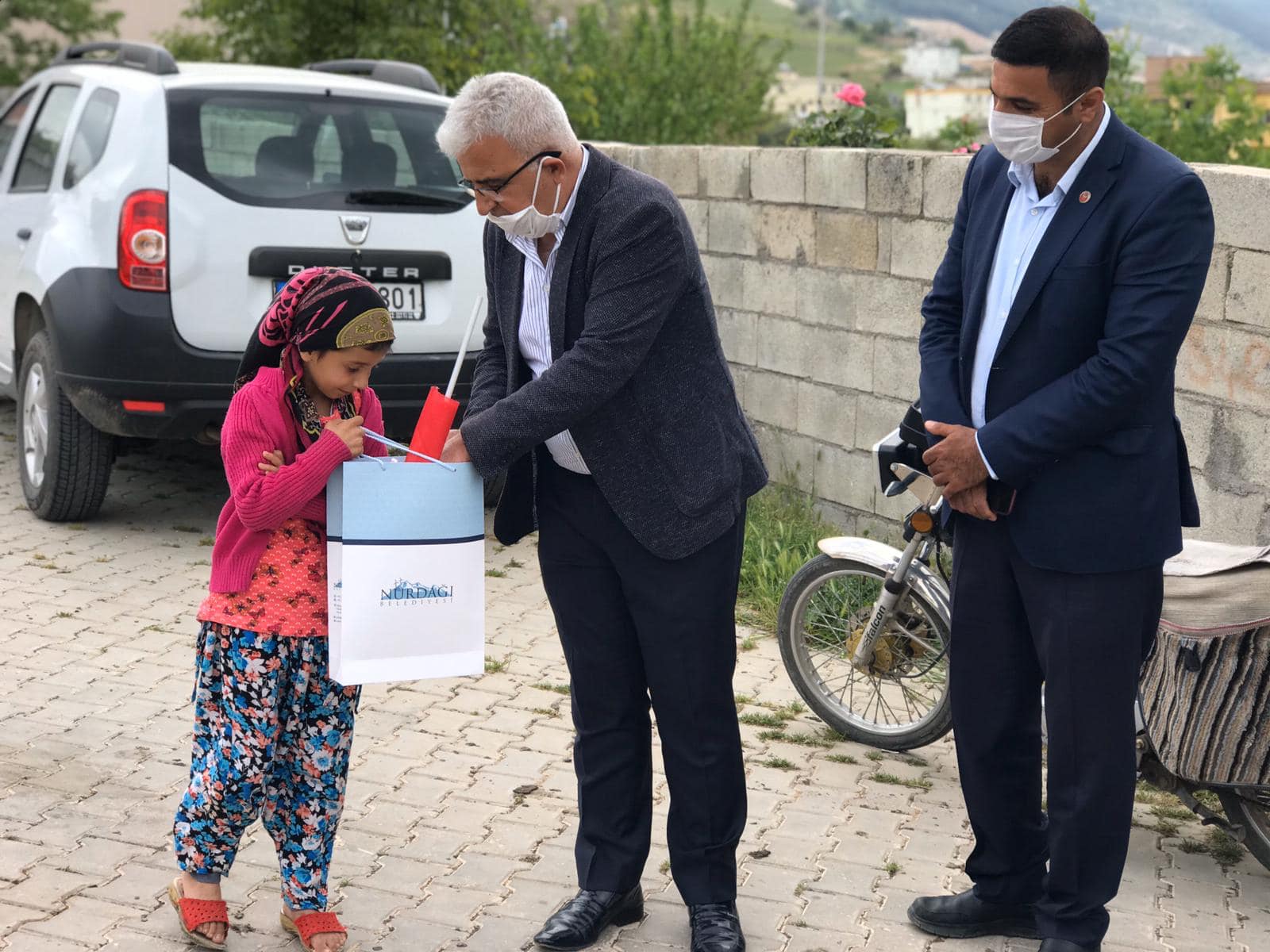 Nurdağı Belediye Başkanı Ökkeş Kavak 23 Nisan Çocuk bayramında çocuklara hediye verdi, akşamda tüm ilçede ağız birliği ile istiklal marşı okudular.
